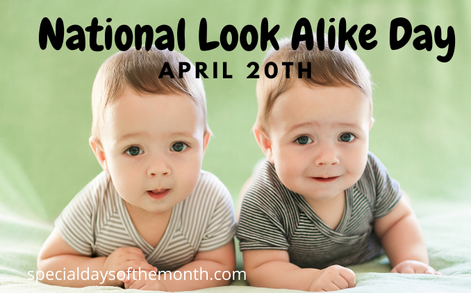在慶祝兩個長得非常像的人的一個特殊節日,兩個人可以是雙胞胎、兄弟姊妹甚至是完全的陌生人,反正只要長得很像,就可以被歸類在這個節日的慶祝範圍之內。如果辦公室中有幾個長得很像的同事,或是有明星臉的路人,都很適合當成在這一天的社群貼文的主題。