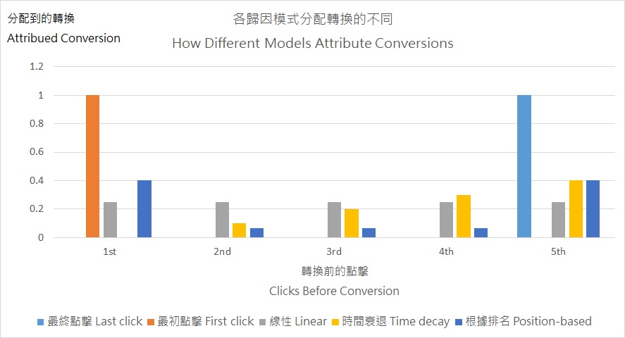 一般而言我都會比較建議在設定的時候使用根據排名的歸因模式,因為這個模式雖然著重在最初與最終的點擊,但還是能讓轉換路徑上每個互動與點擊都能分到功勞。是這也不代表這個歸因模式就是最好的,如何選擇歸因模式還是決定於我們對於消費者的了解。善用轉換歸因工具來知道消費者的轉換時間,並配合Google Analytics與其他分析工具來了解消費者在下訂單之前還會和網站的那些其他地方互動。根據這些資訊來決定最適合我們的歸因模式,我們才能夠根據轉換數據來對我們的廣告活動進行對應的優化。